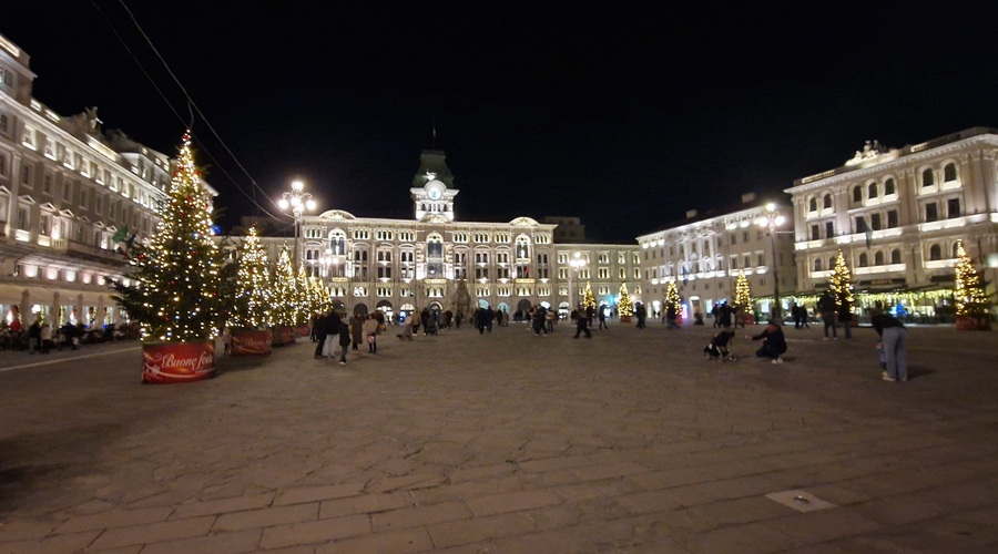 Sledil je sprehod po samem mestu. Poseben poudarek je bil ogled Trga zedinjenja Italije, kjer smo se seznanili z arhitekturnimi posebnostmi in zgodovinskim pomenom tega osrednjega tržaškega trga, ki se odpira neposredno proti morju. Ogled je bil zelo zanimiv, saj je bil sam trg in bližnje ulice okrašen z lučkami, ki dajejo trgu in okolici še poseben čar. Vsak zase je raziskoval zanimivosti tega prostora in si ustvaril svoj pogled na ta del Trsta. Seveda nam je zgodovino in sedanje življenju v mestu zelo lepo razložil naš vodič Erik in nam razkril številne zanimive podrobnosti o prepletanju slovenske, italijanske in avstro-ogrske kulture v tem obmejnem mestu.