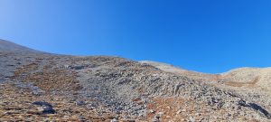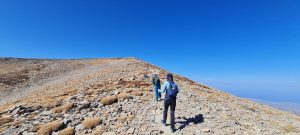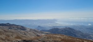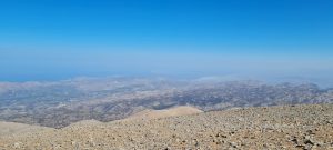 Zadnji teden meseca oktobra sem bil na organiziranem treking dopustu preko ene izmed slovenskih agencij na otoku Kreta. Vsi dnevi razen enega so bili od jutra do večera zapolnjeni. Za prosti dan smo v večini izrabili možnost vzpona na najvišji vrh Krete. Najvišji vrh Krete Timios Stavros leži v pogorju Psiloritis in je s 2456 metri najvišji vrh Krete. Kreta je močno gorat otok in je za pohodnike pravi raj. Vzpon na Timios Stavros ni zahteven in je opredeljen kot lahek vzpon. Izhodišče vzpona je nad vasjo Livadya in sicer pri zaprti koči Lakkos na višini 1550 metrov. Torej če ste individualno na Kreti in si zaželite obiska najvišje gore boste potrebovali prevoz (najem vozila) do omenjene izhodiščne točke. Kljub izredno poznemu terminu (konec oktobra) je bila jutranja temperatura (ob 06.30 uri) ob morju v Hanii 20 stopinj, na izhodišču na višini 1550 metrov ob 08.00 uri pa 16 stopinj. Kot sem omenil je vzpon na Timios Stavros nezahteven. Višino počasi pridobivamo z vsakim korakom, brez tehnično zahtevnih predelov. Gora Timios Stavros je brez kakršnegakoli rastja, kar pomeni da je pohodnik ves čas izpostavljen soncu. Vzpon smo pričeli iz severne strani in nato na sedlu na višini okrog 2250 metrov počasi zavili na zahod. Na vrhu nas je pričakal veter in temperatura okrog 10 stopinj Celzija. Kmalu ob prihodu na vrh se je jakost vetra povečala in kljub soncu je bilo potrebno nase dodati še kakšen kos oblačil z dolgimi rokavi. Z normalnim planinskim tempom hoje so za vzpon potrebne slabe tri ure hoje. Ko prispemo na vrh je trud poplačan s prekrasnim razgledom na sever proti celinski Grčiji in na jug proti Libiji.
